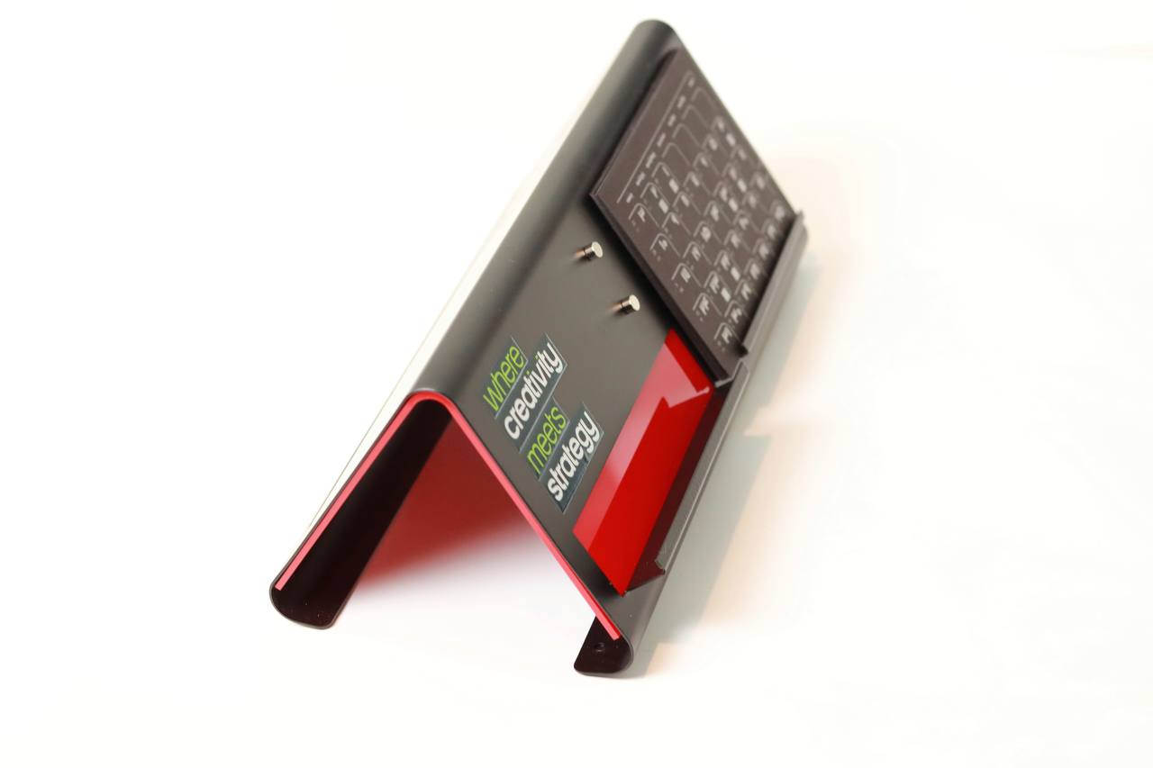 استند و تقویم رومیزی چندکاره تقویمی که فقط روزها را نشان نمیدهد ، سلیقه ی شما را نشان میدهد با قابلیت چاپ و پانچ و حک لوگوی شما متریال: فلز و پلکسی سایز: ۱۲*۳۰ Multi-purpose desk stand and calendar |